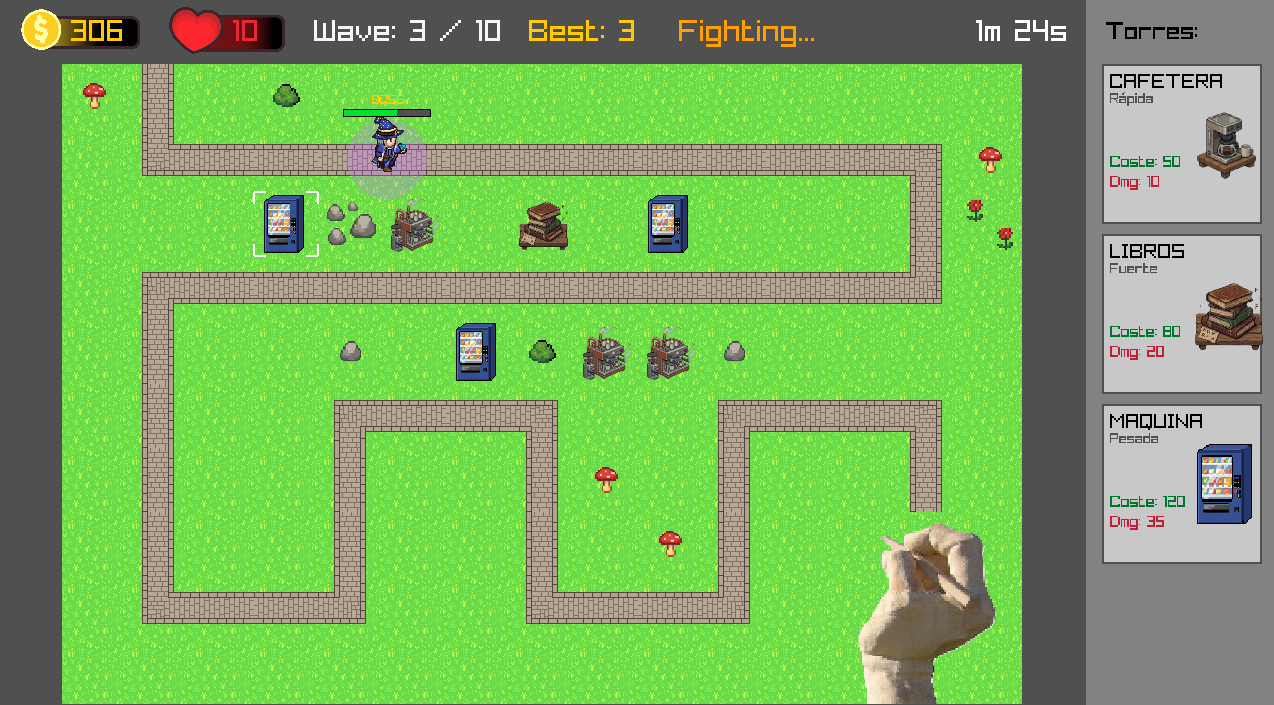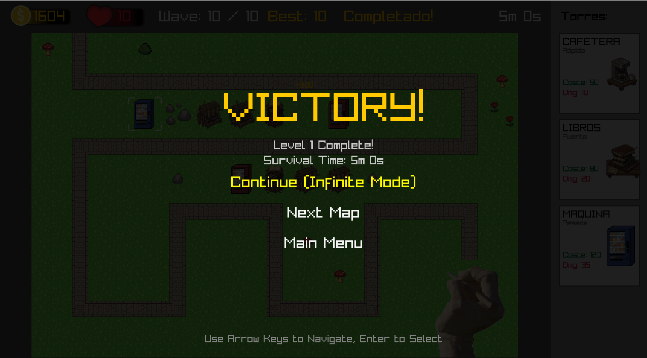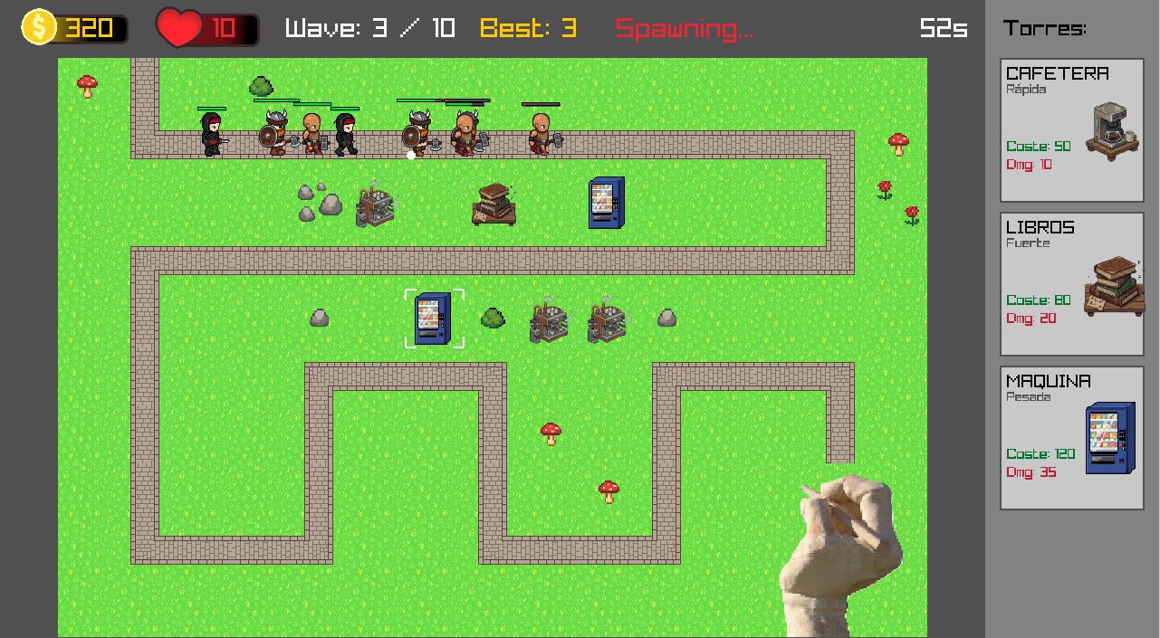 ¡El campus está bajo asedio! En UADefense, la lógica histórica se ha roto y hordas de enemigos anacrónicos —desde fieros espartanos hasta magos oscuros— intentan destruir la universidad.